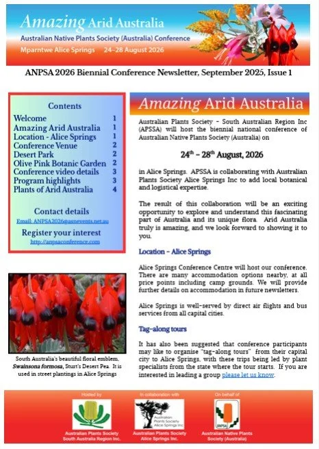 Read about the flora of central Australia in the Australian Plants journals and stay up to date with the latest information as the conference develops with regular newsletters.